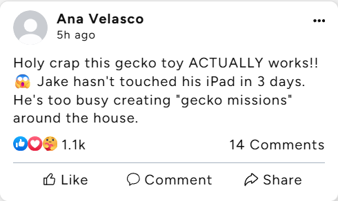 "7-year-old was glued to his tablet for hours. Now he's running around the house, laughing and creating adventures with his gecko friend."